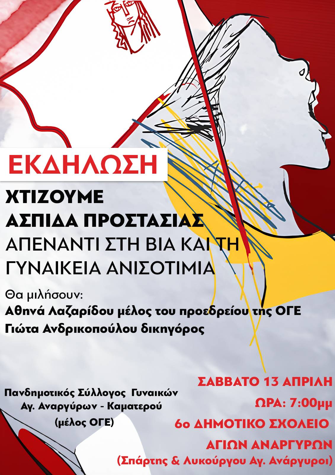 το Σάββατο 13 Απρίλη στις 7:00 μμ, στην αίθουσα εκδηλώσεων του 6ου δημοτικού σχολείου Αγίων Αναργύρων, στην εκδήλωση που διοργανώνει ο σύλλογός μας,
