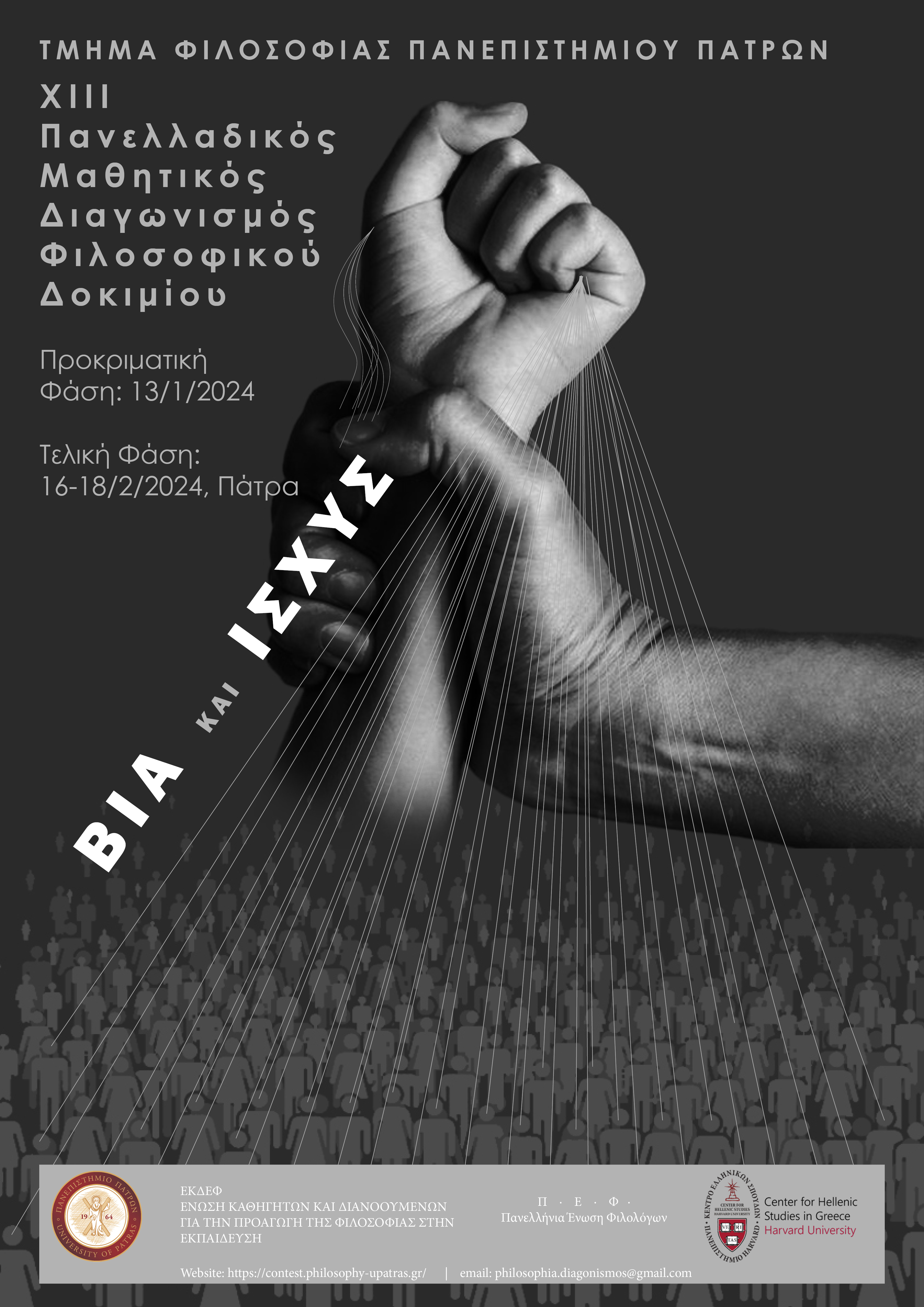 Στον 13ο πανελλήνιο διαγωνισμό φιλοσοφικού δοκιμίου που διοργανώνει το πανεπιστήμιο Πατρών θα συμμετέχει το σχολείο μας.